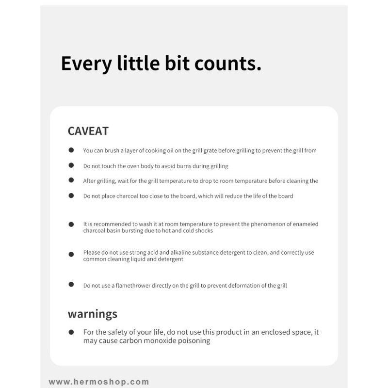 - اقلام داخل بسته: بدنه اصلی کبابپز، نگهدارنده ابزار، سینی خاکستر لعابدار قابل جدا شدن