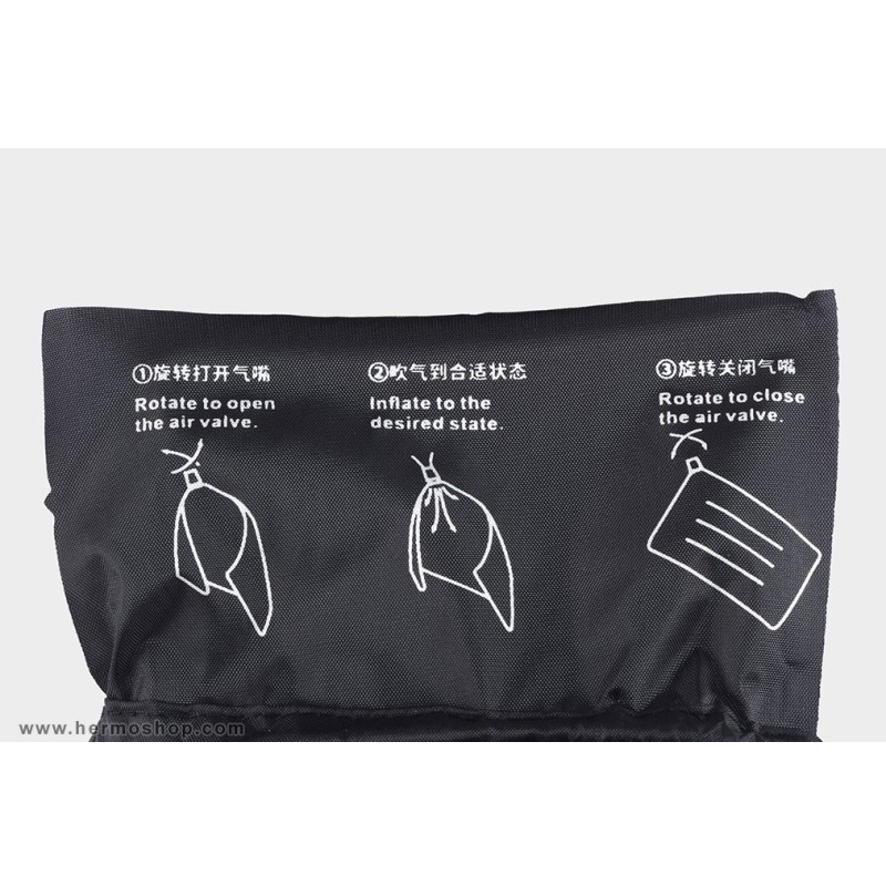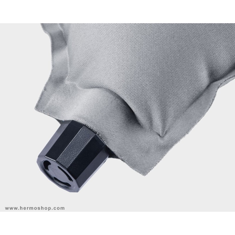 این بالش از دو قسمت اصلی تشکیل شده است: یک کیسه بادی از جنس IPU و یک روکش نرم از جنس پلیاستر. سیستم دریچه چرخان امکان کنترل دقیق مقدار هوا و تنظیم سفتی مورد نظر را فراهم میکند. طراحی آن به گونهای است که پس از تخلیه هوا، حجم بسیار کمی را اشغال مینماید.