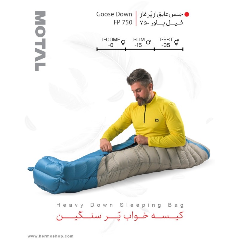 کیسه خواب پر غاز موتال مدل فیل پاور ۷۵۰ – گرم، سبک و حرفه‌ای برای کوهنوردی زمستانی