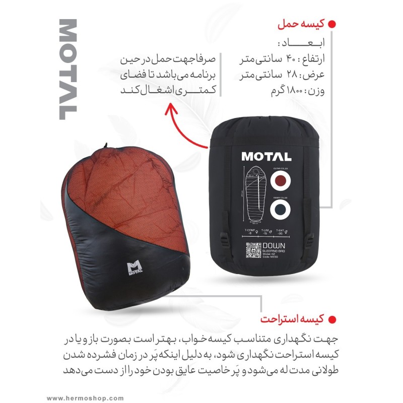 کیسه خواب موتال با فیل پاور ۷۵۰ یکی از بهترین گزینه‌های کیسه خواب پر غاز ایرانی برای کوهنوردی زمستانی، کمپینگ سرد، صعودهای ارتفاع بالا و سفرهای چندروزه در شرایط دمای زیر صفر است. این کیسه خواب با پر غاز باکیفیت (فیل پاور ۷۵۰)، طراحی کانال‌کشی استاندارد و ویژگی‌های حرفه‌ای، گرمایش عالی، وزن نسبتاً سبک و فشردگی خوب را همزمان ارائه می‌دهد و برای کوهنوردان حرفه‌ای و نیمه‌حرفه‌ای ایرانی انتخابی مطمئن و اقتصادی محسوب می‌شود.