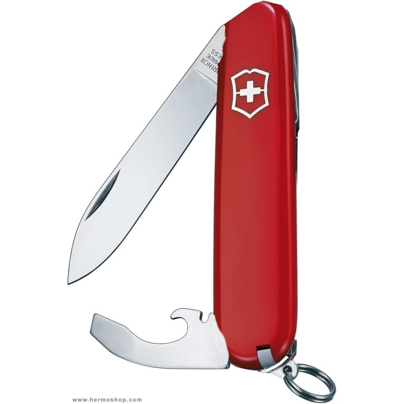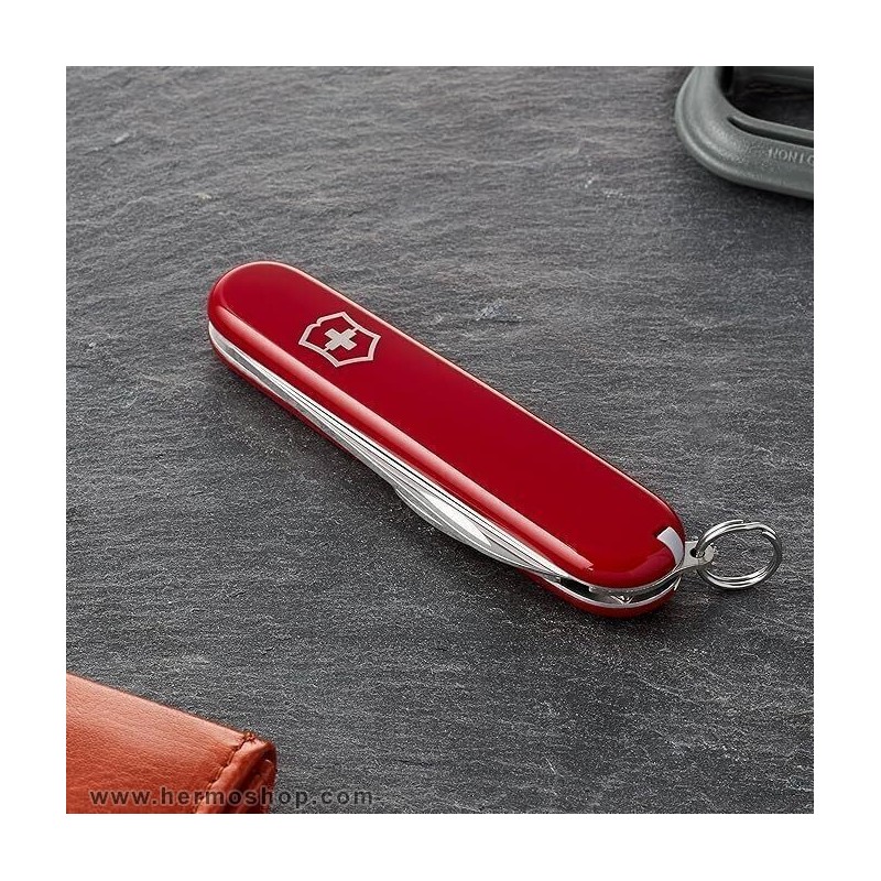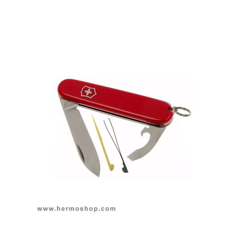 دارای: تیغه چاقوی بزرگ، موچین، خلال دندان، سیم لخت کن، پیچ گوشتی 5 میلی متر،حلقه کلید، درب باز کن بطری، درب بازکن کنسرو