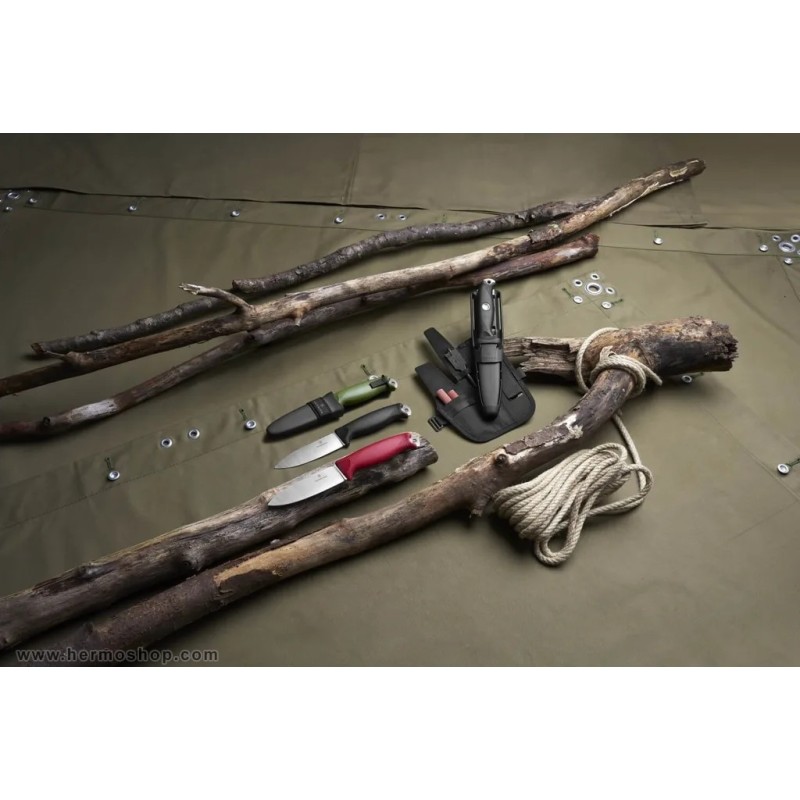 تیغه از فولاد ضدزنگ Sandvik 14C28N با سختی ۵۹ راکول ساخته شده که تعادل مناسبی بین تیزی، استحکام و مقاومت در برابر خوردگی ارائه میدهد. طراحی Drop Point با Full Flat Grind برشپذیری عالی در کارهای مختلف فراهم میکند. دسته TPE با بافت ارگونومیک، در دست گرفتن مناسبی حتی در شرایط مرطوب ایجاد میکند.