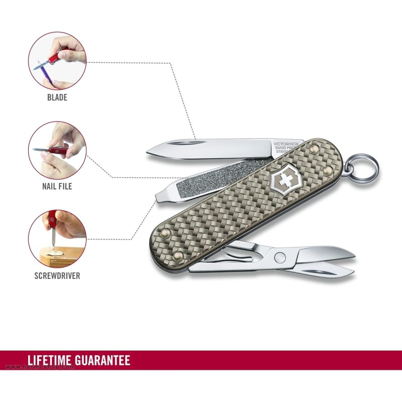 چاقوی جیبی ویکتورینوکس مدل Classic SD Precious Alox با تلفیق هنر طراحی سوئیسی، مواد مرغوب و عملکرد کاربردی، انتخابی ایدهآل برای افرادی است که به دنبال ترکیب زیبایی و عملکرد در یک ابزار روزمره هستند. این محصول نه تنها نیازهای عملی را برطرف میکند، بلکه با طراحی لوکس خود، بیانگر سلیقه و سبک زندگی کاربر محسوب میشود.