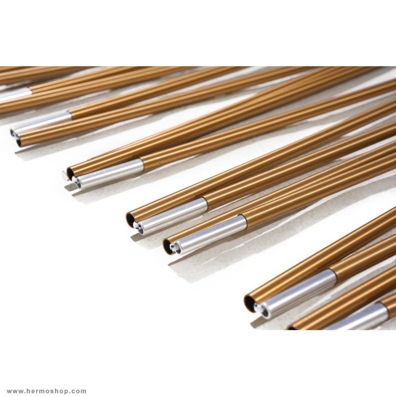 تیرك ها و میخ ها از جنس 7001 Allo Aluminum مقاوم و ضد زنگ میباشد. و همچنین دارای دولایه قابل تفکیک( استفاده در فصول مختلف ) که این چادر را منحصربه فرد کرده است.