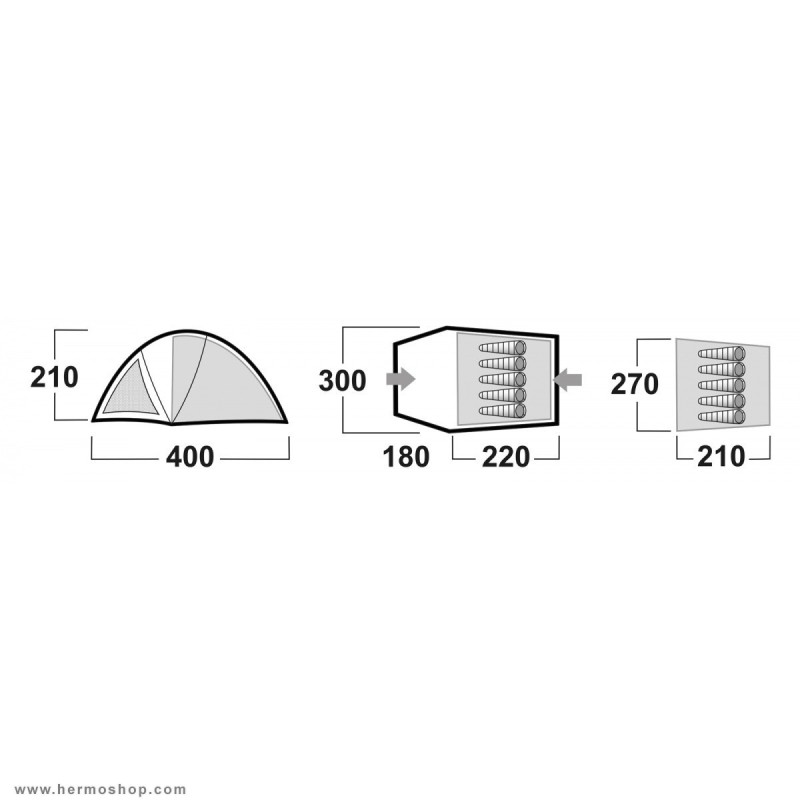 - ابعاد اتاق چادر: 220 * 300 سانتی متر با ارتفاع 210 سانتی متر