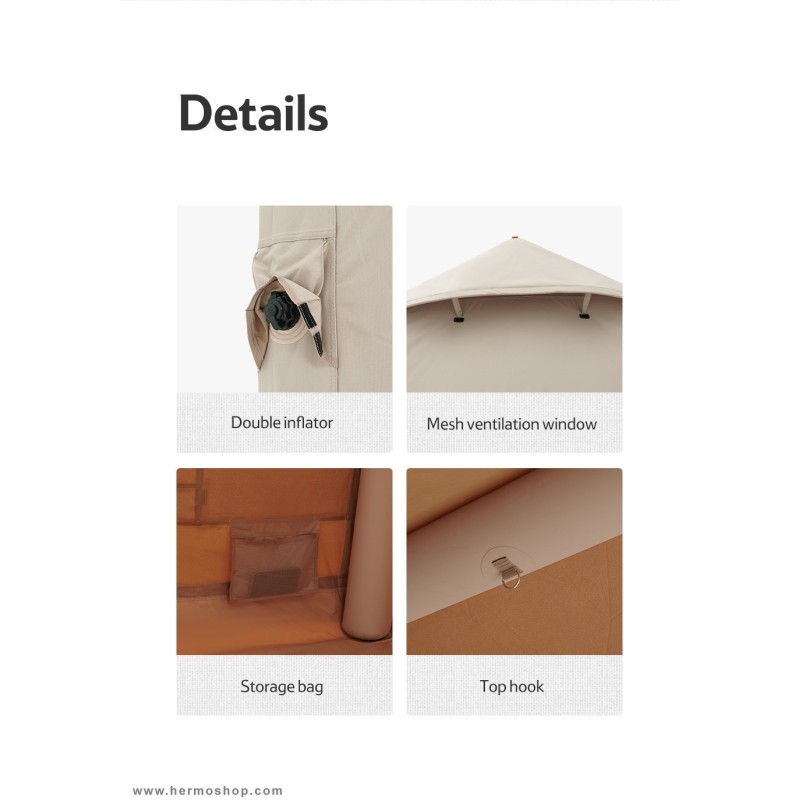 چادر بادی نیچرهایک مدل Air 17.2 با تلفیق طراحی مدرن، مواد باکیفیت و قابلیتهای پیشرفته، انتخابی ایدهآل برای گروههایی است که به دنبال ترکیب راحتی، فضای کافی و عملکرد قابل اعتماد در شرایط مختلف جوی هستند. این محصول با استانداردهای کیفیت عالی، همراهی استثنایی برای تجربیات کمپینگ محسوب میشود.