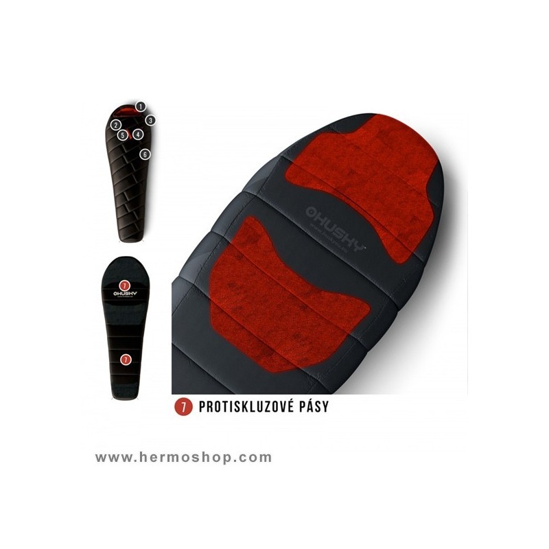 در قسمت پشت کیسه خواب از نوعی پارچه با اصطحکاک بالا استفاده شده است تا مانع سر خوردن و حرکت کیسه خواب بر روی زیرانداز یا تشک گردد