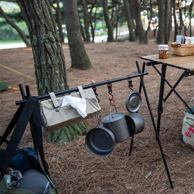 - از این قفسه میتوان برای آویز وسایل آشپزی، ظروف، کیسه زباله یا حتی خشک کردن لباسها استفاده کرد. طراحی کاربردی و انعطافپذیر آن باعث میشود هم در کمپینگ کوتاه و هم در سفرهای طولانیتر یک ابزار ضروری و همهکاره باشد