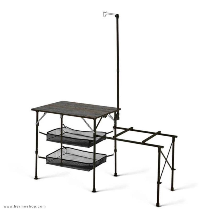 تعداد اجزای همراه: 1 عدد میز اصلی، 2 عدد سبد نگهداری، 1 عدد پایه، 1 عدد میله مخصوص چراغ، 2 عدد نوار عایق حرارتی، 1 عدد کیف حمل