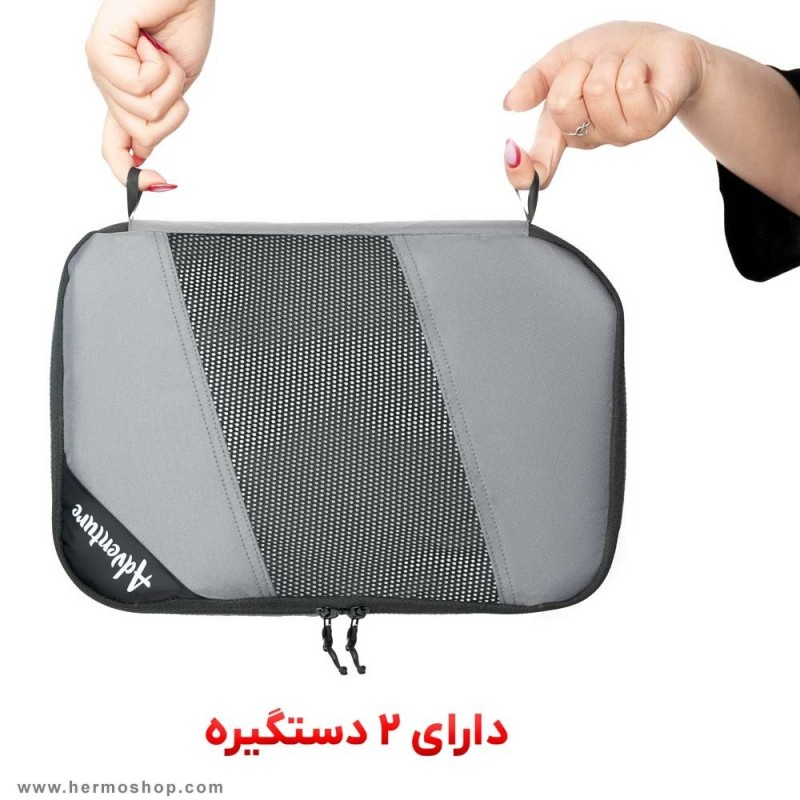 این ست از چهار کیف در سایزهای مختلف تشکیل شده که از جنس پلیاستر با دوخت دقیق و لبهگیری تقویتشده ساخته شدهاند. سطح توری دار آنها امکان مشاهده سریع محتویات و تهویه هوای داخلی را فراهم میکند.