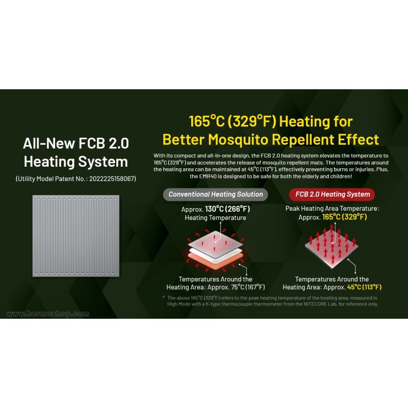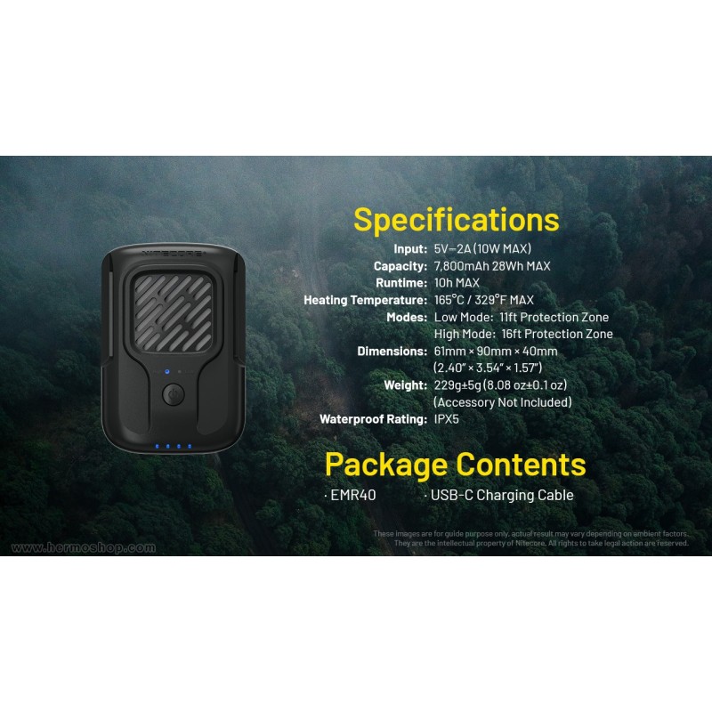 دورکننده حشرات نایتکر EMR40 یک دستگاه هوشمند، سبک و بسیار موثر برای محافظت شخصی و منطقهای در برابر نیش پشه، مگس و سایر حشرات مزاحم است. این محصول بدون استفاده از مواد شیمیایی، اسپری یا عطرهای آزاردهنده، با گرم کردن آرام پدهای دافع حشره (Nitecore MRM10)، یک منطقه محافظتی ایمن و بدون بو ایجاد میکند و تجربهای راحت و بدون نیش را در فضای باز، کمپینگ، حیاط خانه، ماهیگیری، کشاورزی، گلخانه، خودرو یا هر محیط دیگری تضمین مینماید.