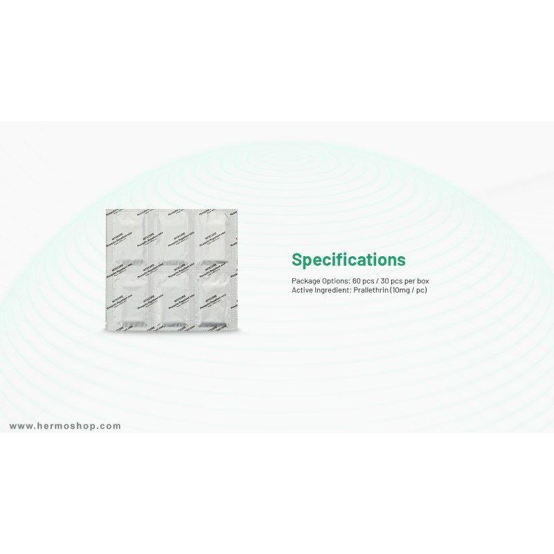 - ماده فعال: Prallethrin (پرالترین) – ۱۰ میلیگرم در هر پد