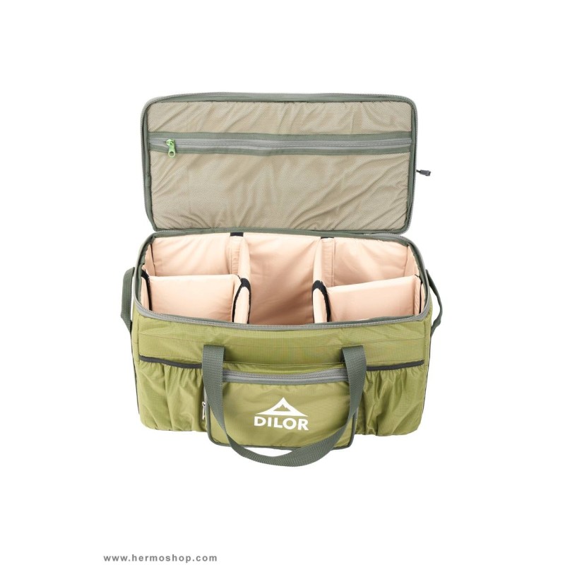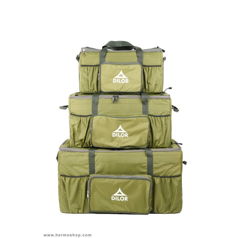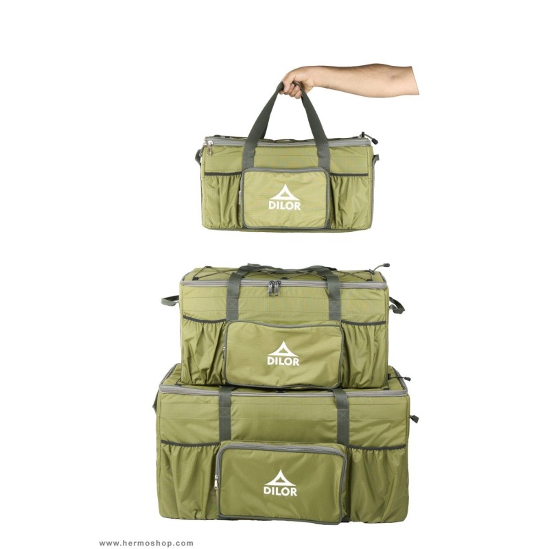 ساک حمل بار DILOR، مناسب انواع سفرهایی میباشد که برای حمل وسایلی مثل لوازم و پوشاک با خودرو خود نیاز به کیفی بزرگ و جادار دارید. این محصول که مانع آسیب رسیدن به لوازم و کوله پشتی شود. در 4 طرف دیواره های این کیف بار، فوم وجود دارد که از ضربه خوردن وسایل هم جلوگیری میکند. هم چنین در 4 طرف این کیف دستگیره هایی وجود دارد که حمل دو نفره را برای شما آسان می کند. در قسمت بیرونی کیف (روی درب) بندهایی تعبیه شده که می توانید لوازم سبک مورد نیازتان را روی آن ببندید.