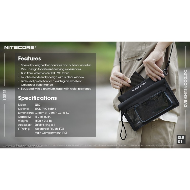 کیف ضدآب نایتکر SLB01 یک کیف و کاور هوشمند ۲ در ۱ با ظرفیت ۱ لیتر (۶۱ اینچ مکعب) است که برای محافظت از تلفن هوشمند، پاوربانک، هدفون بیسیم، مدارک کوچک و لوازم ضروری در شرایط مرطوب و سخت طراحی شده. این محصول با وزن بسیار کم ۱۵۰ گرم و ابعاد جمعوجور ۲۳.۵ × ۱۷ سانتیمتر، همراهی ایدهآل برای قایقرانی، ردیابی رودخانه، طبیعتگردی، کمپینگ، ماهیگیری، رفتوآمد شهری در باران و هر فعالیتی است که نیاز به محافظت کامل در برابر آب دارید.