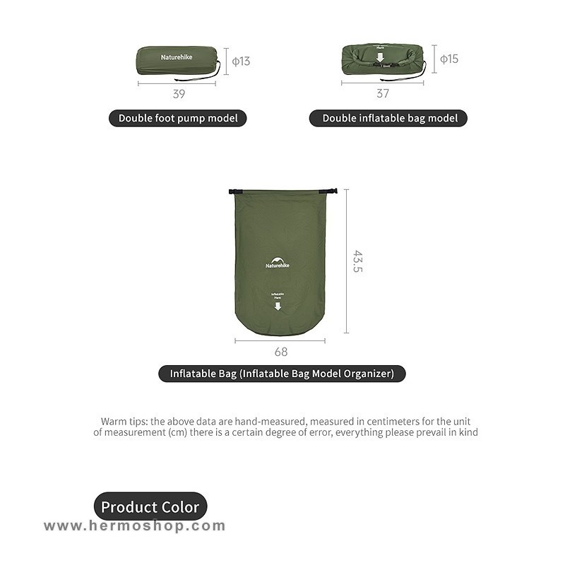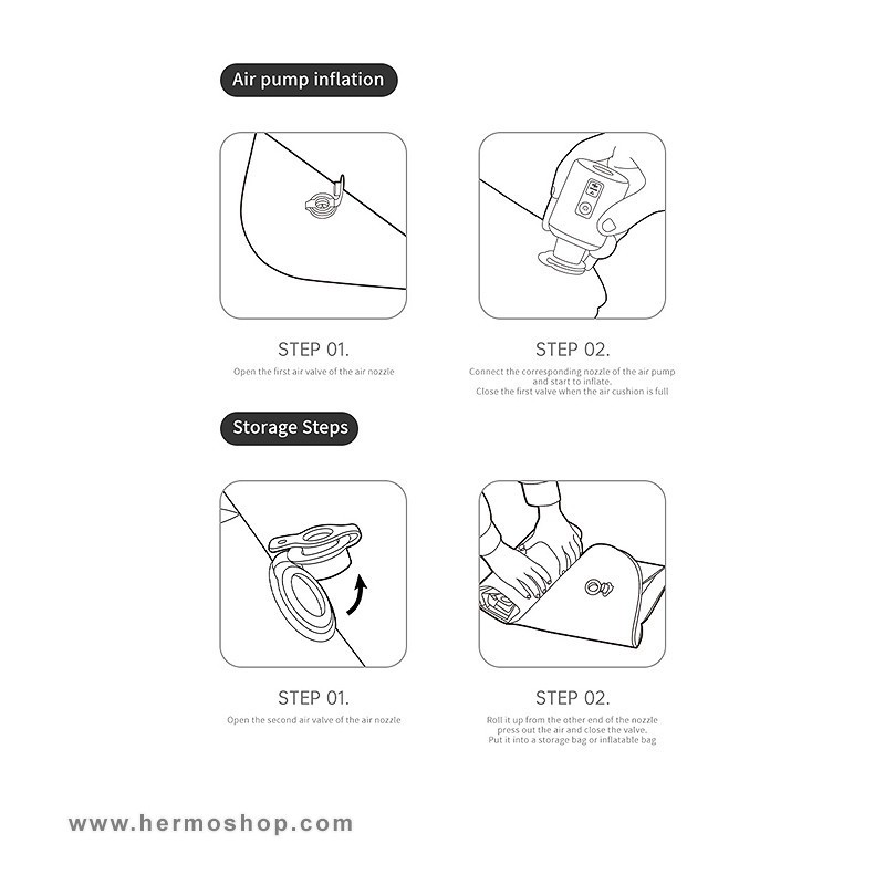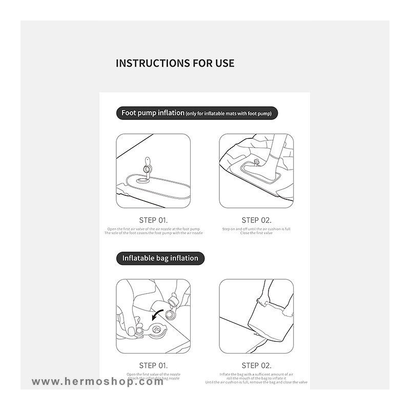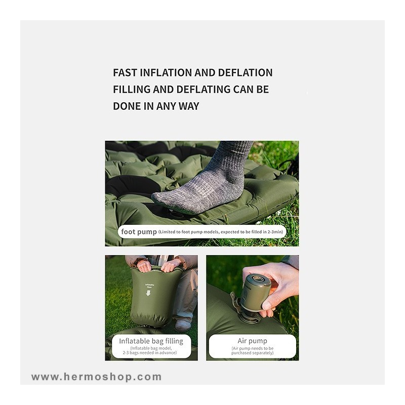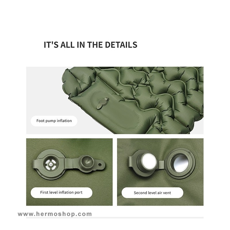 - پمپ پایی داخلی برای پر کردن زیرانداز در ۳-۴ دقیقه (بدون نیاز به نیروی دهان).