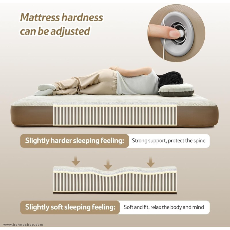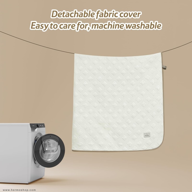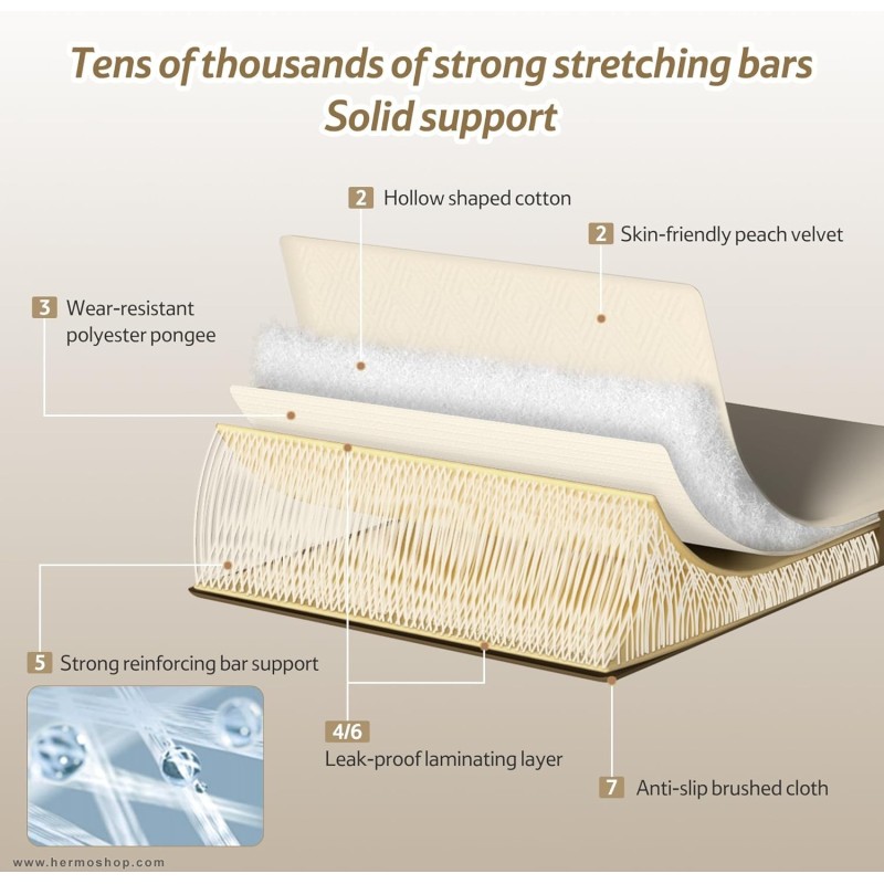 این تشک با ساختار سه لایه ساخته شده: لایه رویی از پارچه پوست هلو با حس مخملی، لایه میانی از الیاف پلیاستر متراکم، و لایه زیرین از PVC ضد آب. این ترکیب علاوه بر راحتی، دوام و مقاومت بالایی در برابر عوامل محیطی ارائه میدهد.