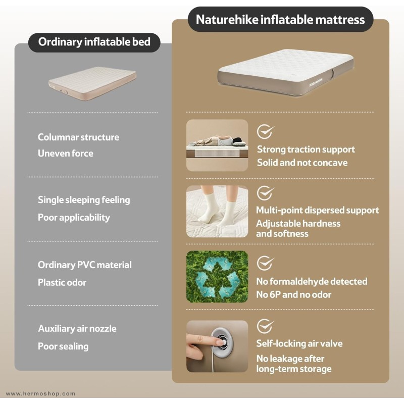 تشک بادی یک نفره نیچرهایک مدل CNK2450WS023 با ترکیب طراحی ارگونومیک، ساختار مقاوم و قابلیت تحمل وزن بالا، انتخابی ایدهآل برای کسانی است که به دنبال استراحتی باکیفیت در طبیعت هستند. این محصول با برخورداری از عایقبندی مؤثر و راحتی مطلوب، همراهی مطمئن برای ماجراجوییهای outdoor محسوب میشود.