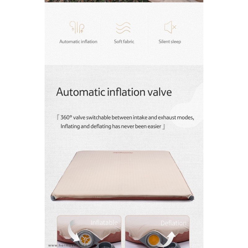 زیرانداز بادی دو نفره اتوماتیک نیچرهایک مدل NH21FCD11 یک محصول پیشرفته و کاربردی برای استراحت در طبیعت است که با طراحی خودبادشونده و ساختار سهلایه، راحتی و آسایش بینظیری در شرایط outdoor فراهم میکند.