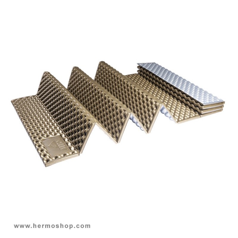 این زیرانداز از ترکیب دو ماده ساخته شده است: یک لایه آلومینیوم که به عنوان عایق حرارتی موثر عمل میکند و از نفوذ سرمای زمین جلوگیری مینماید، و یک لایه فوم IXPE که سطحی نرم و راحت برای خواب ایجاد کرده و در برابر فشار مقاوم است و به سرعت به شکل اولیه بازمیگردد.