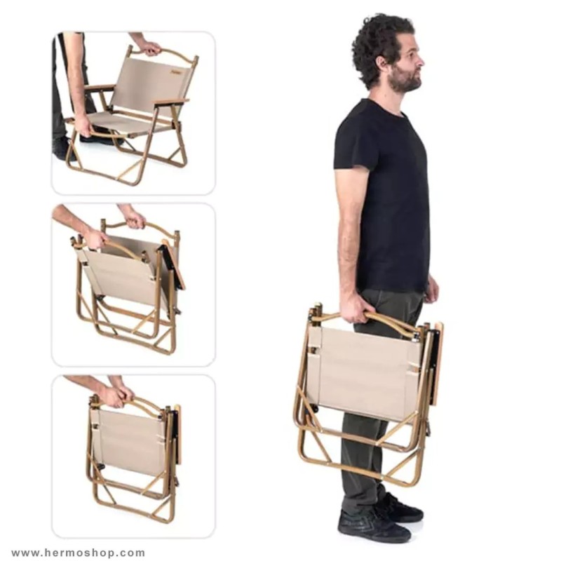این صندلی با توجه به وزن سبک و طراحی جمع و جور، همراهی ایدهآل برای مسافران و طبیعتگردان است. زیبایی طبیعی دستههای چوبی در کنار عملکرد حرفهای، آن را به انتخابی متمایز برای علاقهمندان به فضای باز تبدیل کرده است.