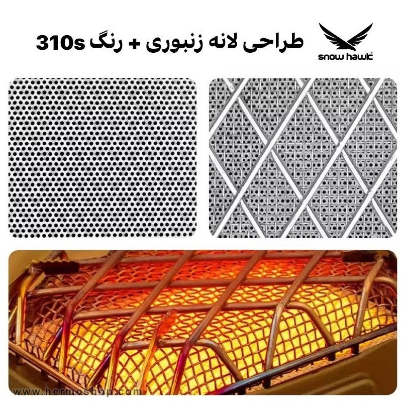 - توری فلزی محافظ اطراف المنت → پخش یکنواخت گرما + ایمنی بالا (جلوگیری از تماس مستقیم با المنت داغ)
