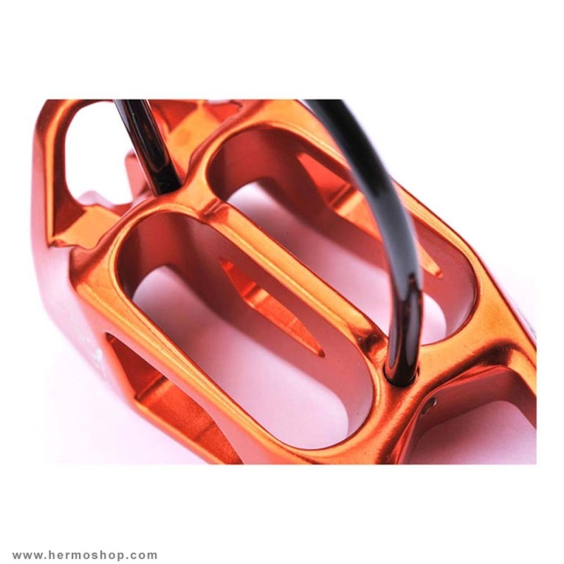 - دارای سطوح اصطکاک v شکل با شیارهای جانبی نامتقارن برای تطبیق پذیری با اصطکاک طناب برای کنترل بهتر