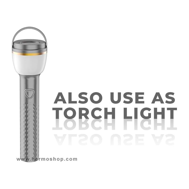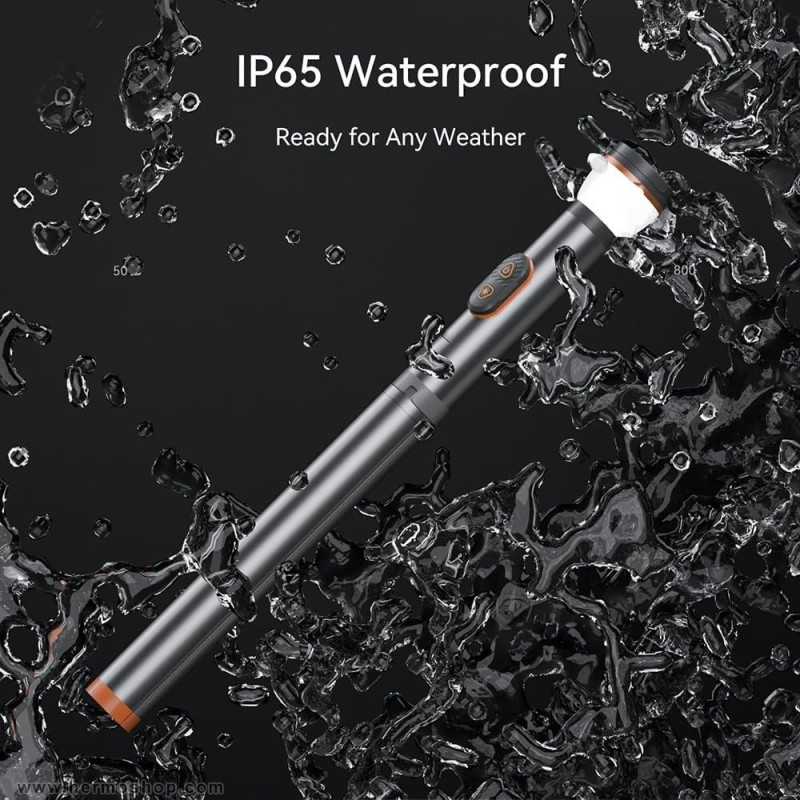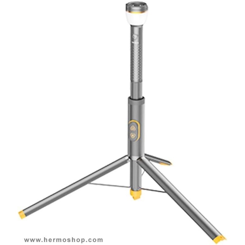 این چراغ با بدنه ترکیبی از پلاستیک مقاوم و آلیاژ آلومینیوم ساخته شده که دوام و سبکی را همزمان تأمین میکند. استاندارد ضدآب IPX5 از دستگاه در برابر پاشش آب و باران محافظت مینماید. طراحی یکپارچه با سه پایه متصل، امکان استقرار پایدار روی سطوح مختلف را فراهم میآورد.