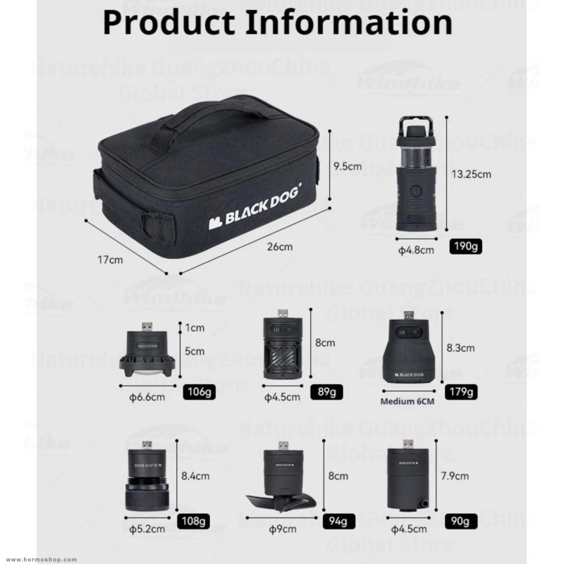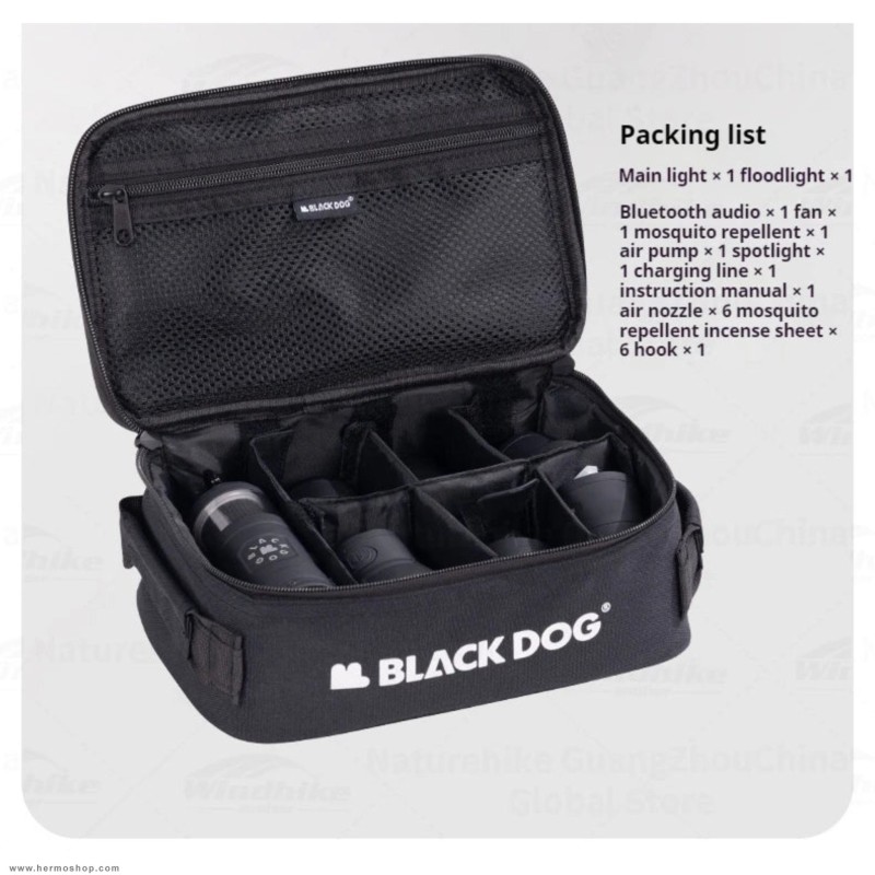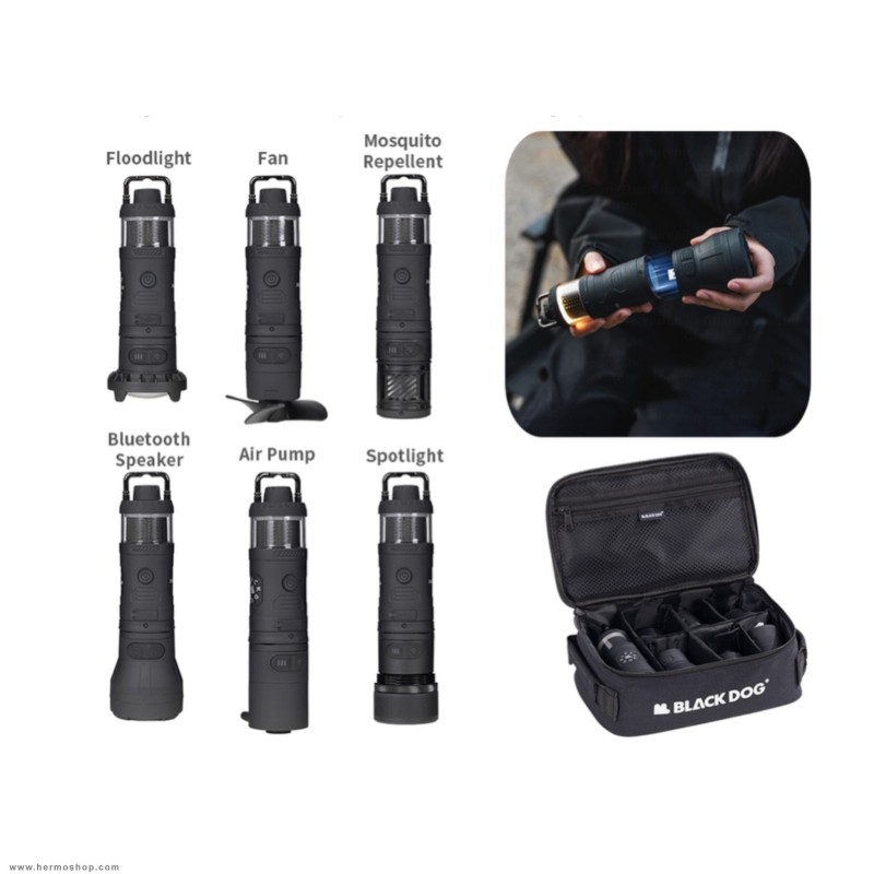 دارای: چراغ قوه، دمنده پمپ باد، پاوربانک، پنکه، اسپیکر، دافع حشرات