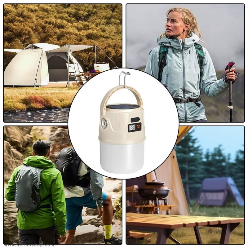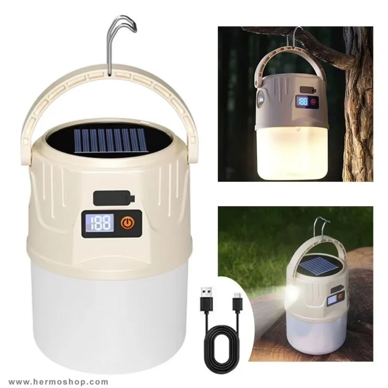 این چراغ با بدنهای از جنس ABS و PP ساخته شده که مقاومت مناسبی در برابر ضربه و شرایط محیطی دارد. طراحی جمعوجور و آویز آن امکان نصب سریع در چادر، خودرو یا فضای باز را فراهم میکند. پنل خورشیدی تعبیهشده روی بدنه، امکان شارژ مستقل در طبیعت را ممکن میسازد.