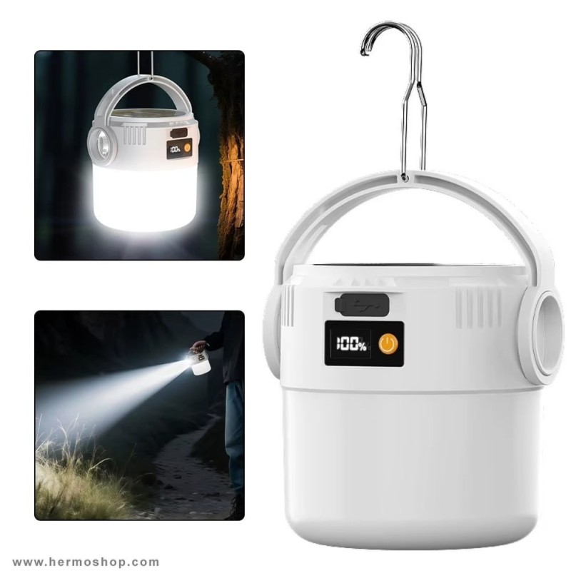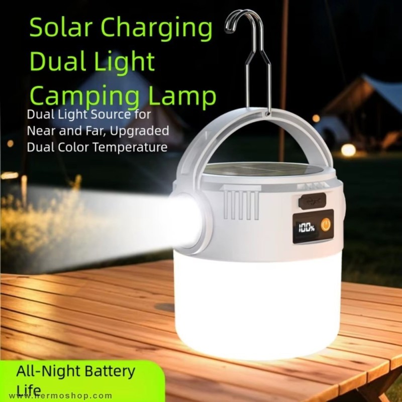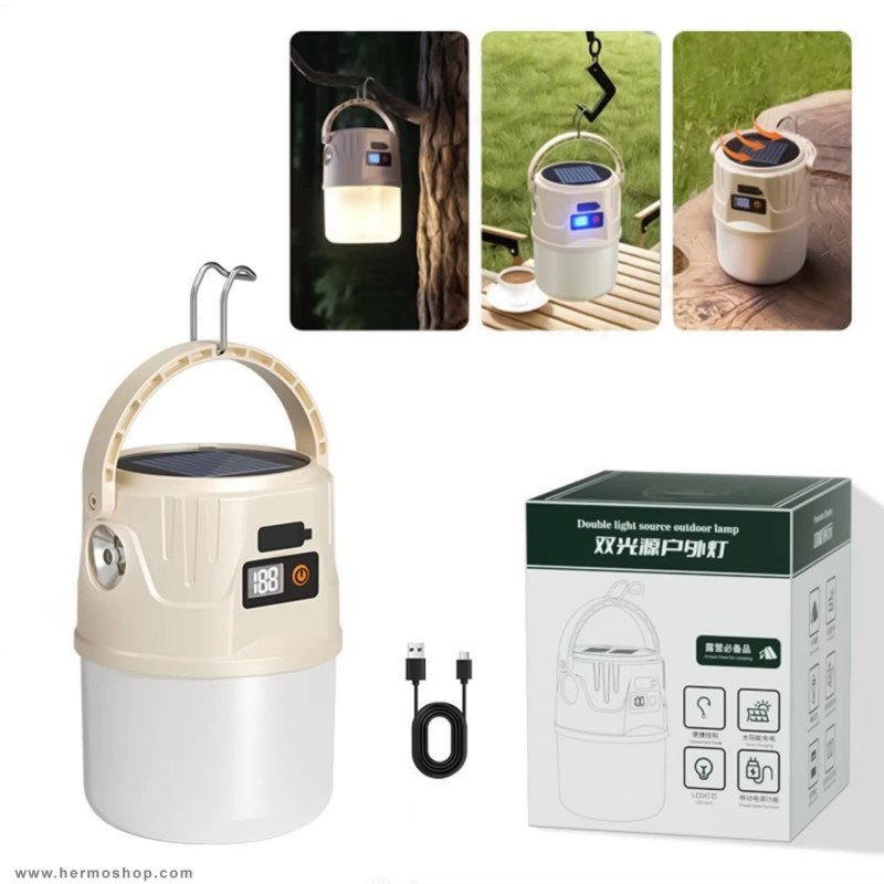 چراغ چادر سولار دوکاره DOUBLE LIGHT مدل FD-8000 یک منبع نور چندمنظوره و مستقل است که با بهرهگیری از فناوری شارژ خورشیدی و الکتریکی، روشنایی مطمئن و پایدار را در شرایط مختلف فراهم میکند. این محصول با طراحی آویز و عملکرد کارآمد، انتخابی ایدهآل برای کمپینگ، طبیعتگردی و مواقع اضطراری است.