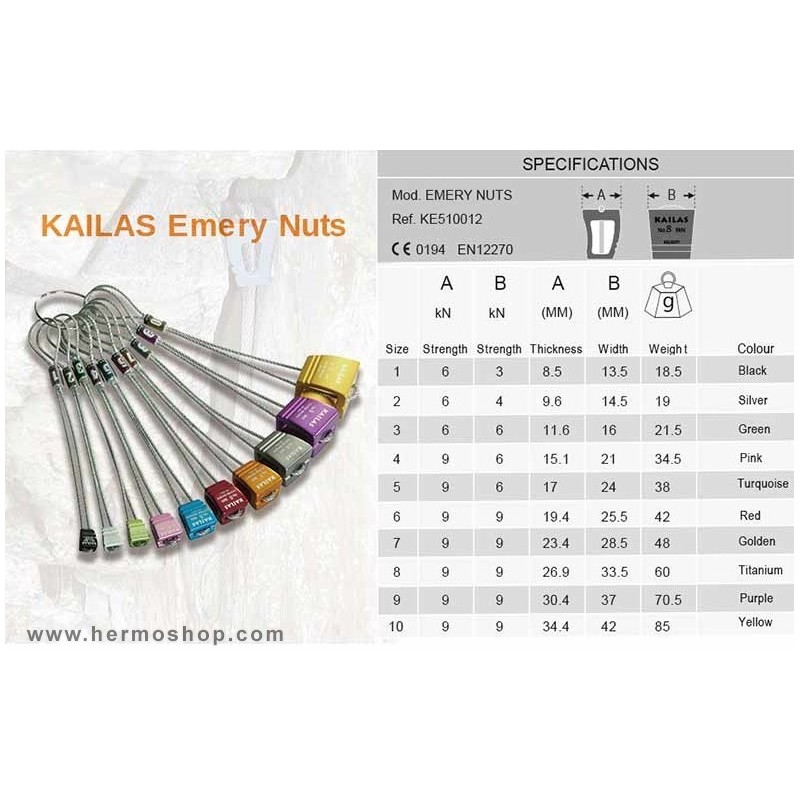 ست 6 عددی کیل (شفت) کایلاس مدل Emery (EA101A) یک ست کامل از ابزار میانی غیرفعال (Passive Protection) در سایزهای کوچک است که برای سنگنوردی سنتی (Trad)، به ویژه در ترکهای باریک و ظریف طراحی شده است. این ست طیف مناسبی از سایزهای ریز را برای پوشش شکافهای کوچک فراهم میکند.