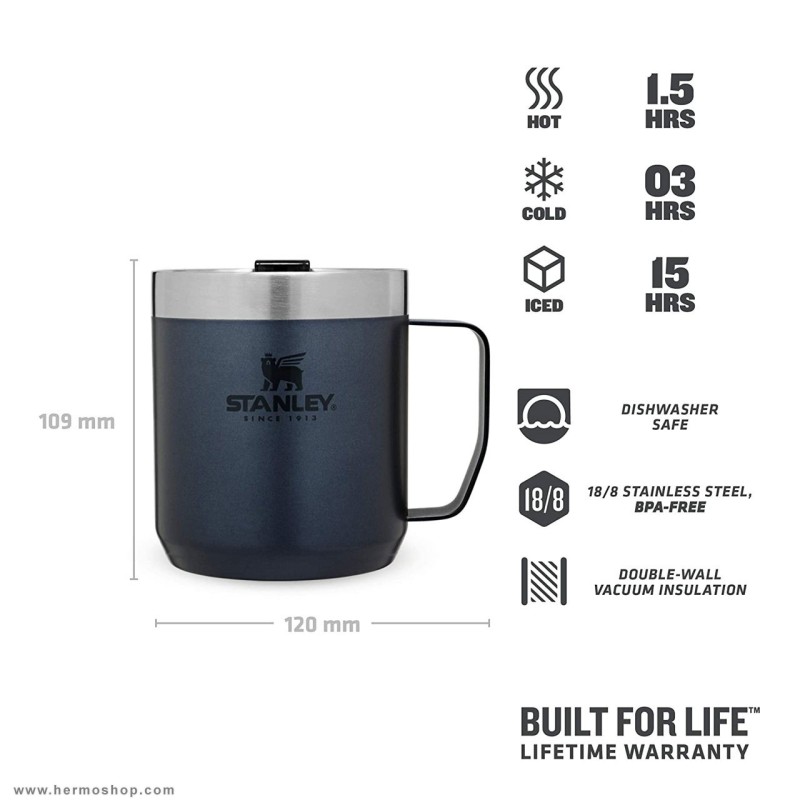 ماگ استنلی Stay-Hot Camp با استانداردهای جهانی تولید شده و از سری کلاسیک این برند محسوب میشود. طراحی مقاوم، عایقبندی عالی و مواد اولیه باکیفیت، آن را به انتخابی ایدهآل برای علاقهمندان به طبیعت و سفر تبدیل کرده است.