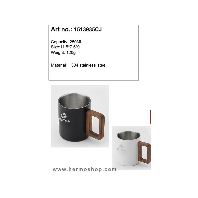لیوان استیل دسته چوبی تکتاپ مدل 1513935CJ