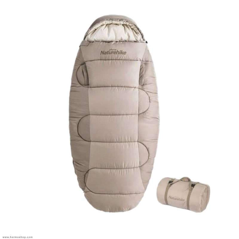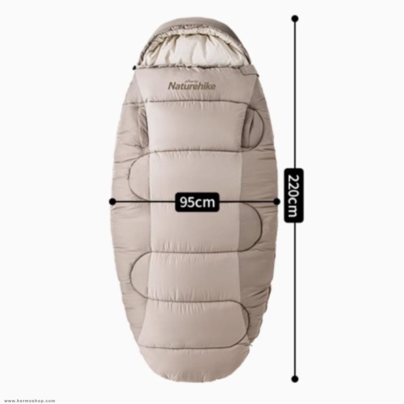 این کیسه خواب با طراحی بیضیشکل فضای وسیعی برای حرکت و تغییر وضعیت خواب فراهم میکند. رویه از پلیاستر پونجی 300T ضدآب و مقاوم ساخته شده و آستر داخلی از پنبه طبیعی ضدحساسیت برای راحتی حین خواب بهره میبرد.