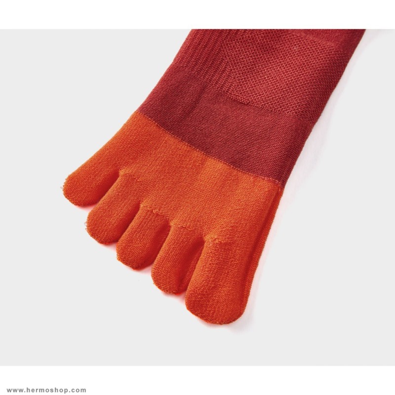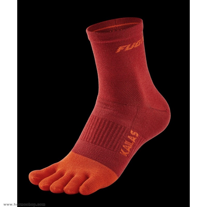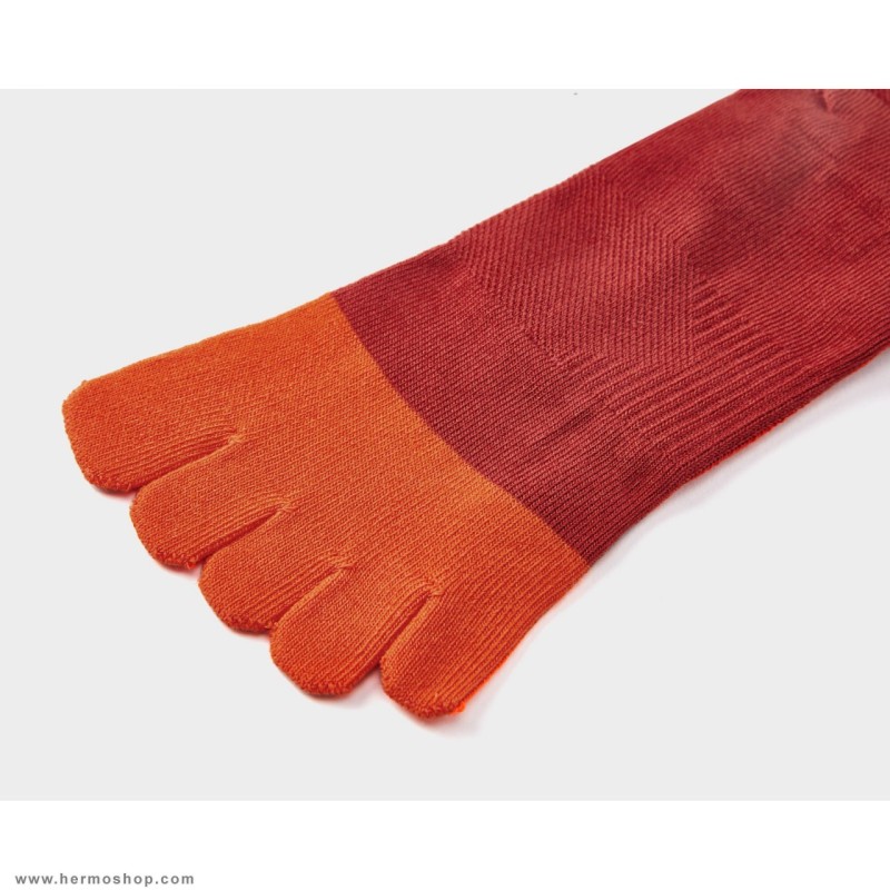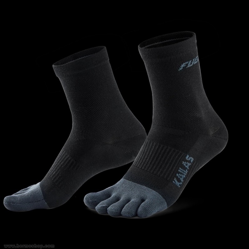 این جوراب با طراحی منحصر به فرد پنجانگشتی ساخته شده که انگشتان پا را از هم جدا نگه میدارد. این طراحی از سایش بین انگشتان و ایجاد تاول جلوگیری میکند. استفاده از نخ Coolmax و ساختار مشبک، خشکی و خنکی پا را در حین فعالیت حفظ مینماید. حلقههای حولهای در کف پا ضربههای وارده را جذب کرده و پاشنه ۷ شکل از حرکت جوراب جلوگیری میکند.