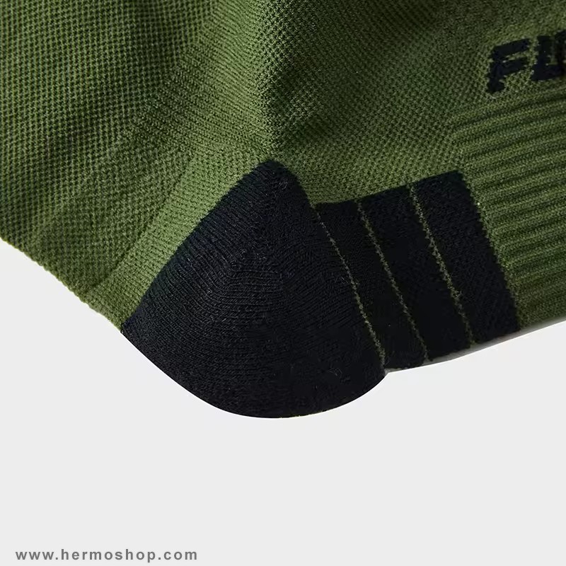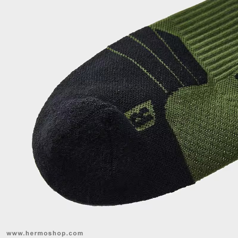 این جوراب با استفاده از نخ Coolmax ساخته شده که رطوبت را به سرعت از سطح پوست دور کرده و پا را خشک نگه میدارد. بافت متراکم و طراحی مخصوص چپ و راست، فیت دقیقی روی پا ایجاد میکند. حلقههای حولهای در زیر پا به عنوان ضربهگیر عمل کرده و فشارهای وارده در حین دویدن را کاهش میدهند. پاشنه ۷ شکل ثبات جوراب را افزایش داده و از جمع شدن آن جلوگیری میکند.