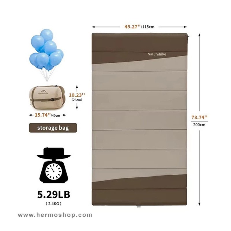 - ساختار: کیسه خواب مستطیلی با قابلیت اتصال جانبی