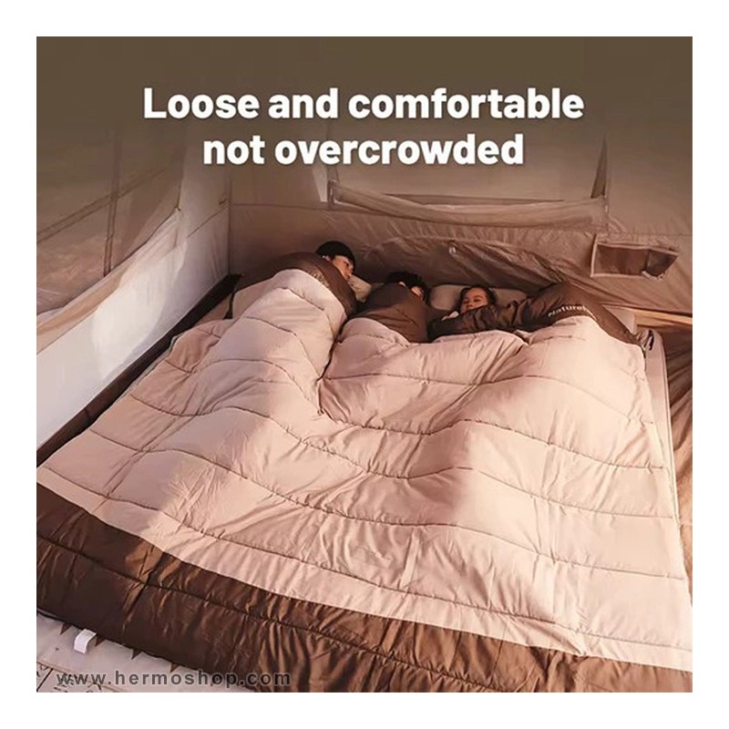 قابلیت اتصال دو کیسه خواب برای ایجاد فضای خواب بزرگتر مناسب ۳ تا ۴ نفر.