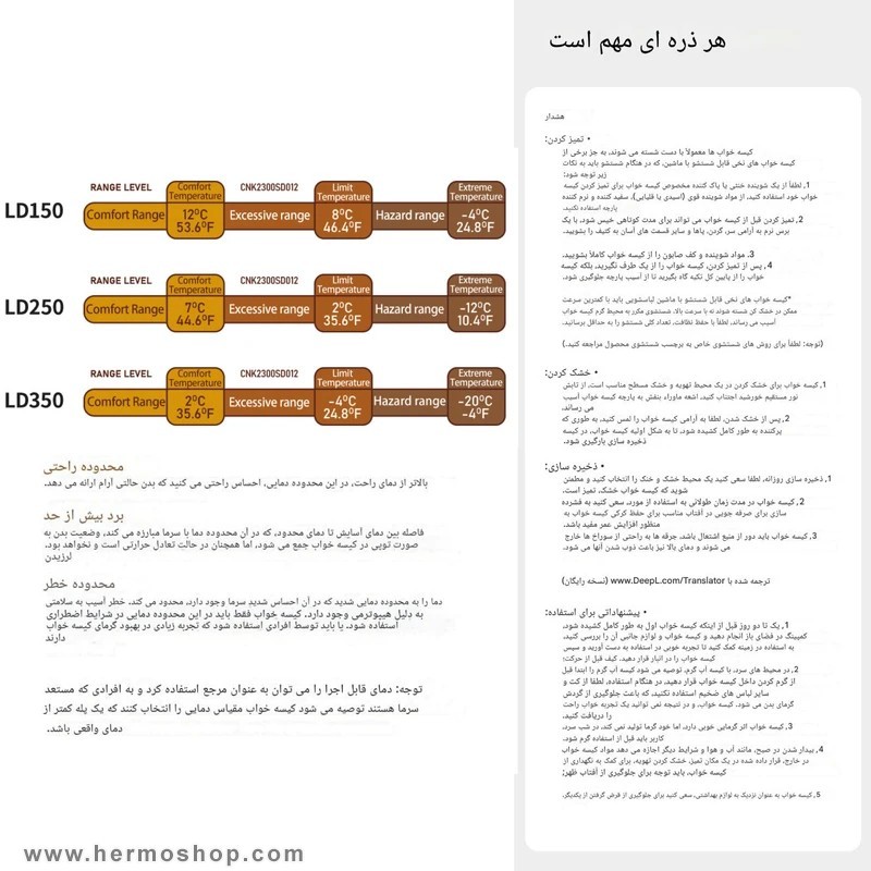 - کمپینگ بهاری/پاییزی: عملکرد مطلوب در دمای ۵ تا ۱۵ درجه سانتیگراد.