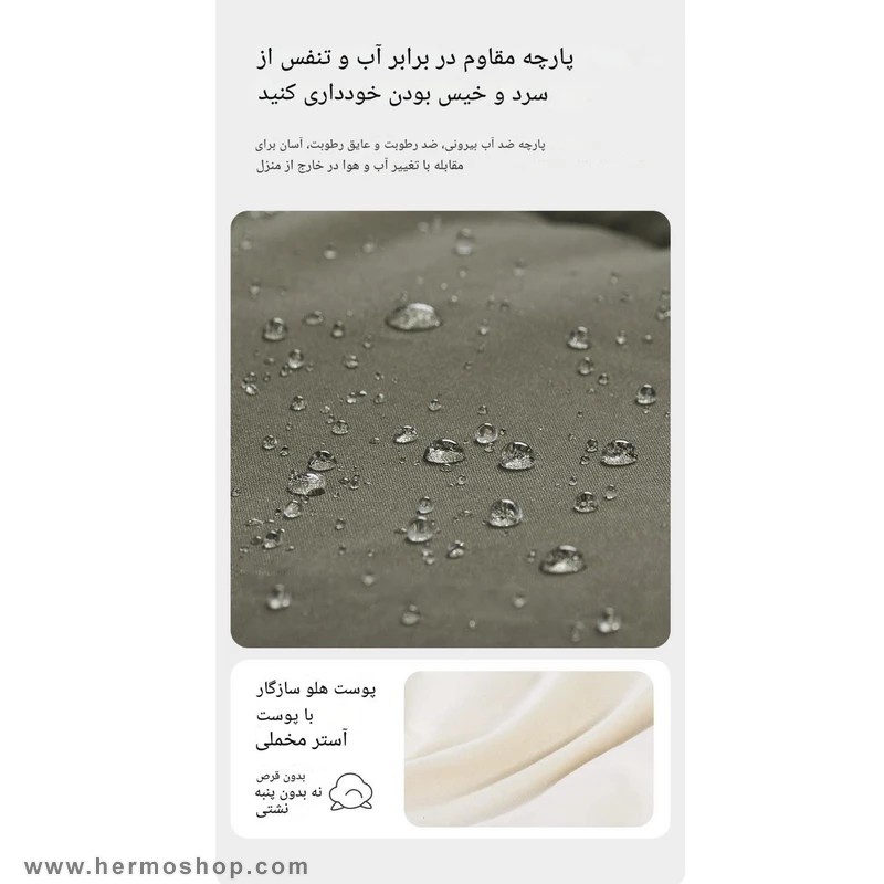- نوار عایق زیپ: جلوگیری از نفوذ سرما از طریق زیپ.