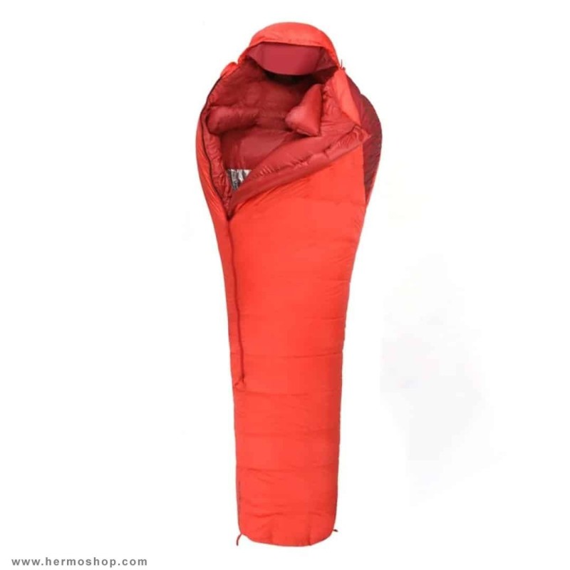 - جنس عایق: ۹۰٪ پر غاز سفید اروپایی + Primaloft (در پشت، لگن و ساق پا برای مقاومت بهتر در برابر فشار)
